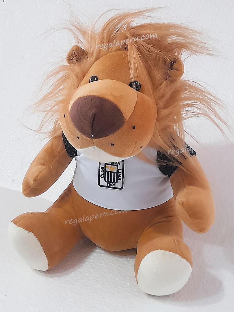 Leoncito de peluche de Alianza Lima, en tamaño mediano, color marrón con blanco.