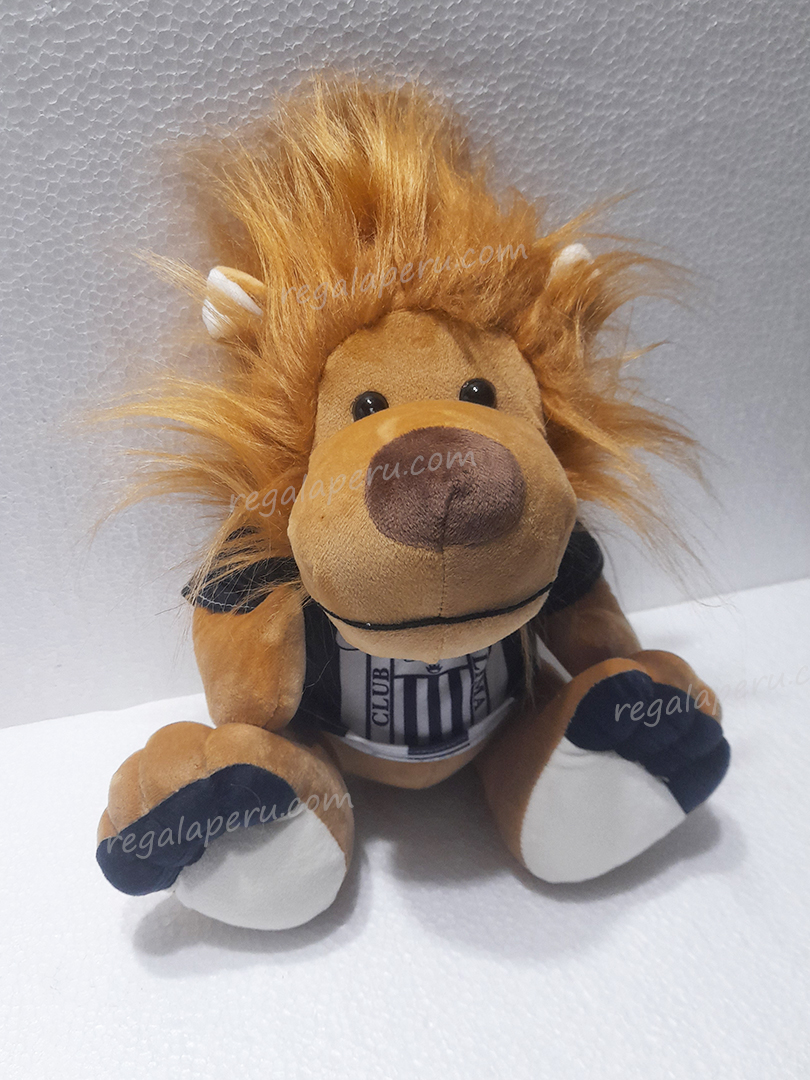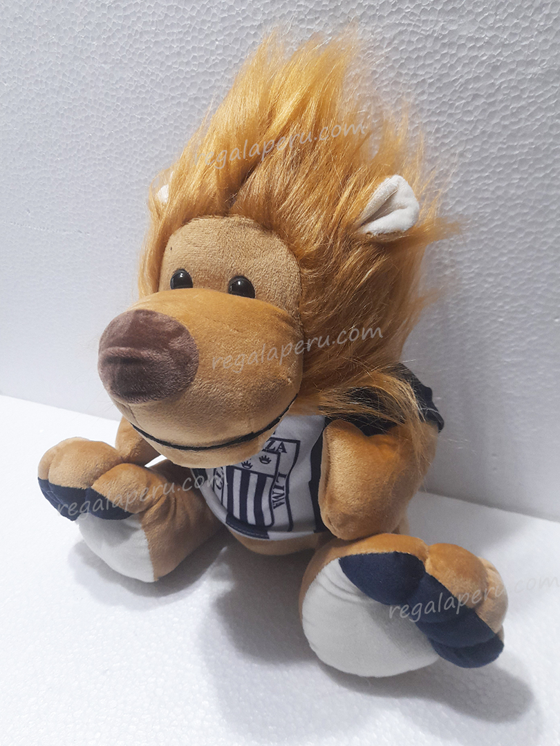 Leoncito de peluche de Alianza Lima, en tamaño grande(34cm), color marrón con blanco.